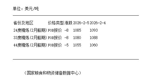 2月5日馬來西亞棕櫚油2月船期FOB報價