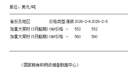 2月6日進(jìn)口油菜籽到國(guó)內(nèi)港口C&F報(bào)價(jià)